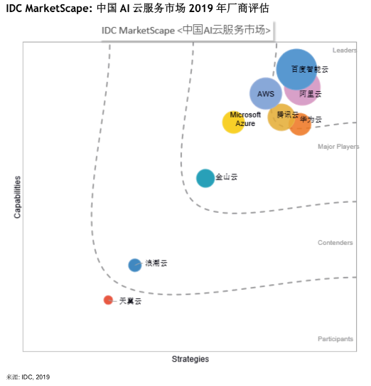 (百度智能云处于中国AI云服务市场领导者象限最上方)